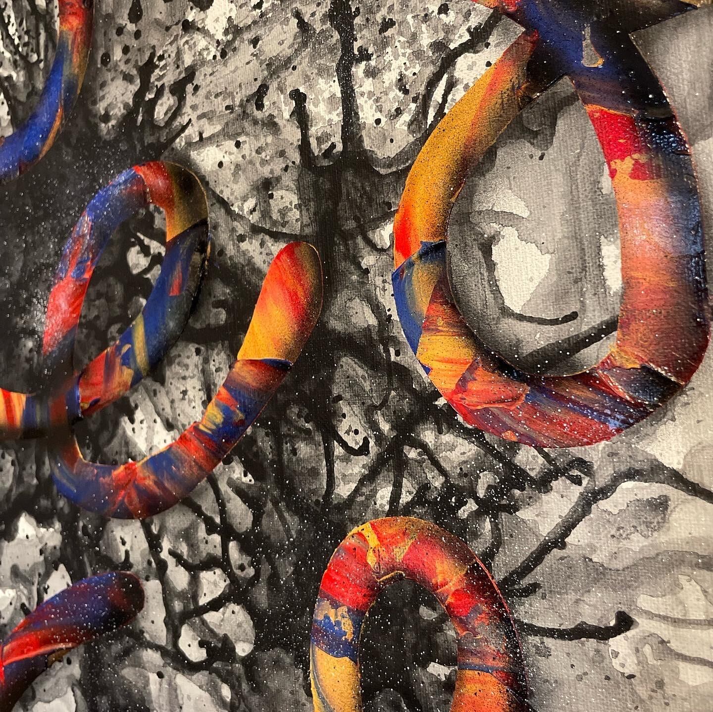 キャンバスにアクリル、インク